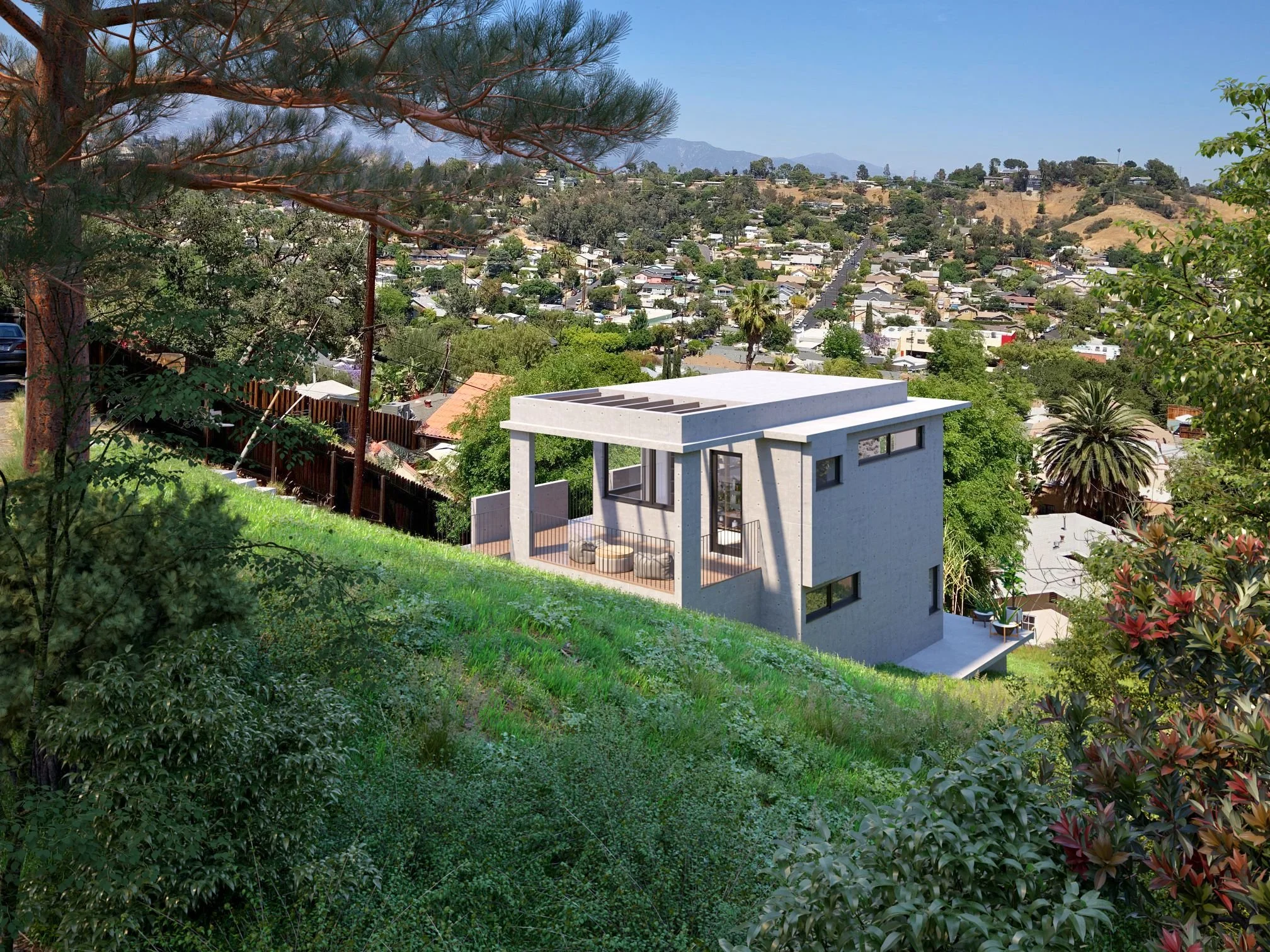 Perched above Highland Park, this two story ADU views the distant, snow-capped mountains.